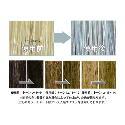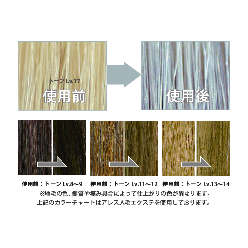 ハイブリーチした髪やカラーで明るくした髪でも、髪質や使用方法によって効果は個人差がございますのでご了承ください。